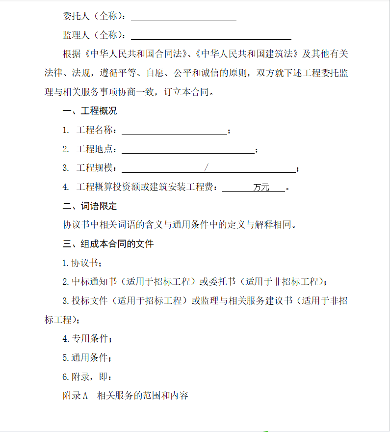 1.1.1 “工程”是指按照本合同约定实施监理与相关服务的建设工程。