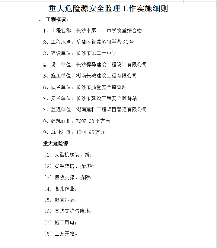 工程名称:长沙市第二十中学食堂综合楼。工程地点:岳麓区银盆岭银学巷20号。建设单位:长沙市第二十中学。设计单位:长沙悍马建筑工程设计有限公司。施工单位:湖南长教建筑工程有限公司。质监单位:长沙市质量安全监督站