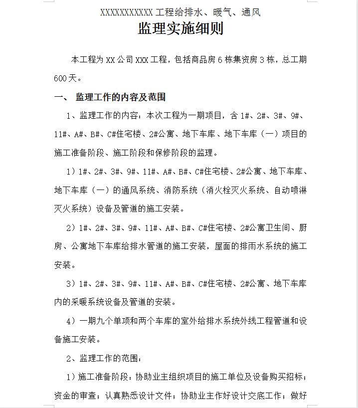 • 给排水、暖气、通风工程监理实施细则  30P