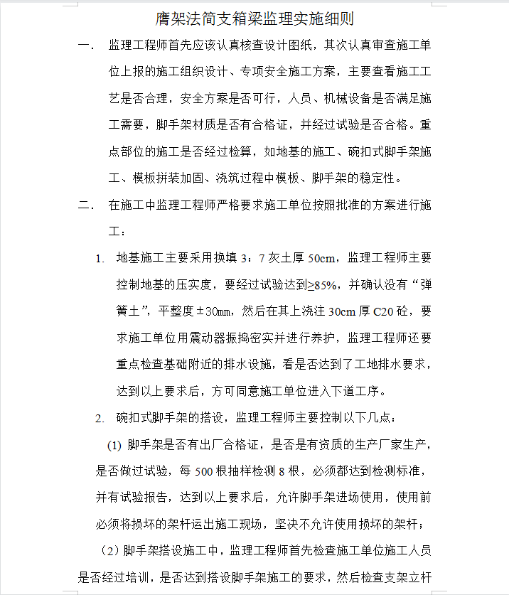 • 膺架法简支箱梁监理实施细则 5P