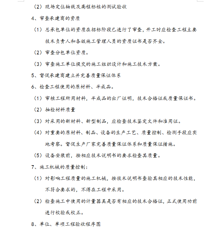 总承包单位的资质在招标阶段已进行了审查,开工时应检查工程主要技术负责人和各级施工管理人员的资质证书是否齐全。审查分包单位资质。审查施工单位提交的施工组织设计和施工技术方案。