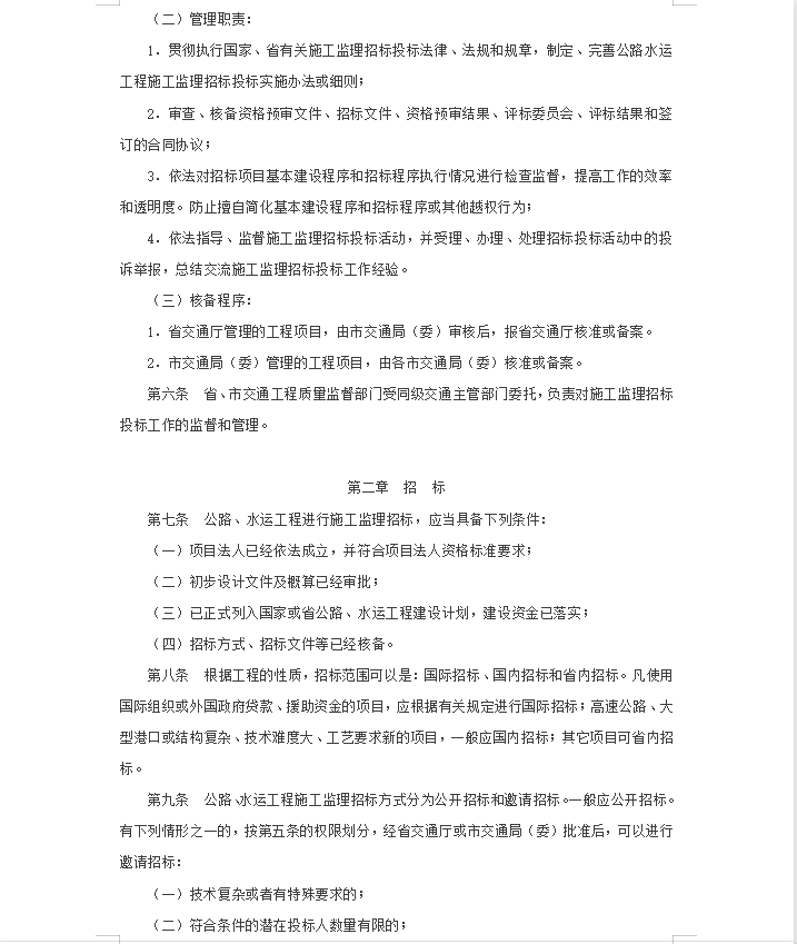 • 某省公路水运工程施工监理招标投标管理实施细则 15P