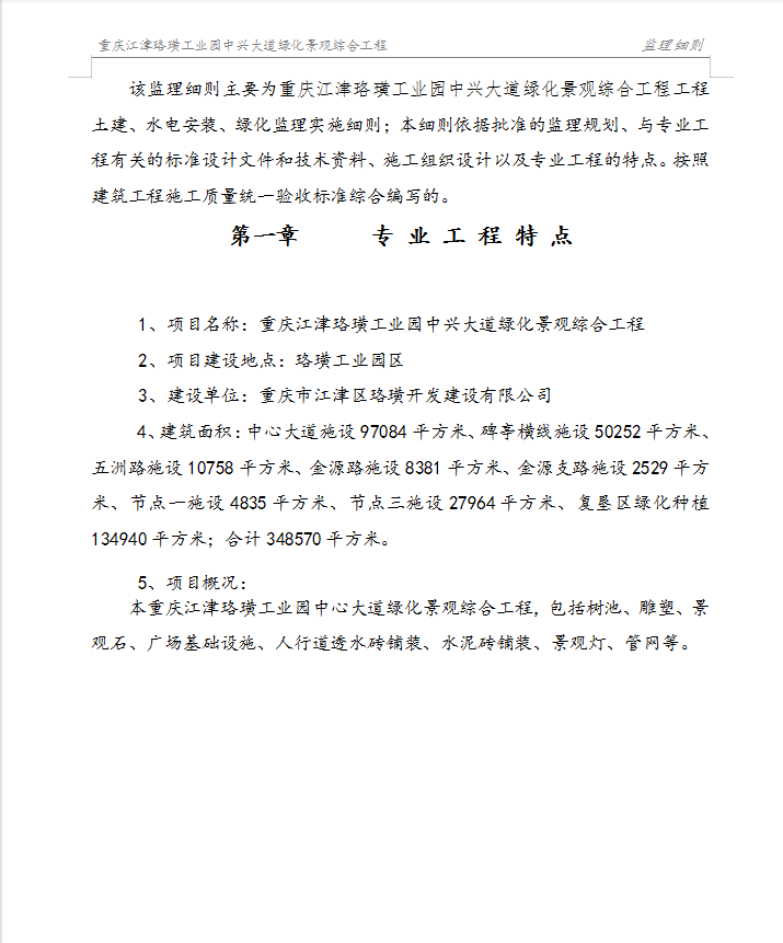 本xxxxxx工业园中心大道绿化景观综合工程,包括树池、雕塑、景观石、广场基础设施、人行道透水砖铺装、水泥砖铺装、景观灯、管网等。