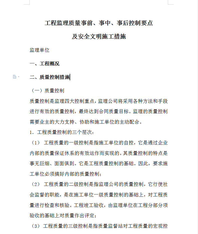 质量控制的另一个重要方面,就是防止工程质量通病的发生。因此施工单位提交质量通病的防治措施,措施必须可行、有效。