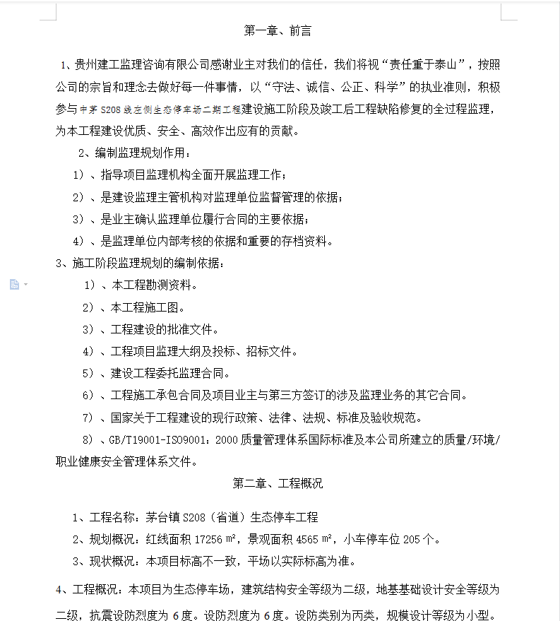 本项目为生态停车场,建筑结构安全等级为二级,地基基础设计安全等级为二级,抗震设防烈度为6度。设防烈度为6度。设防类别为丙类,规模设计等级为小型。本建筑物造结构安全等级为二级。合理使用年限为10年。车行道、通道采用AC—16沥青面层,小车停车区采用植草砖面层,大巴车停车区采用彩色沥青面层,小车停车区停车数量205辆,小车辆尺寸(5.7m×2.85m)。