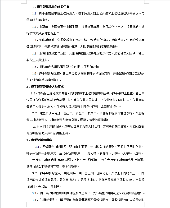 • 定销房,脚手架拆除,安全技术交底
