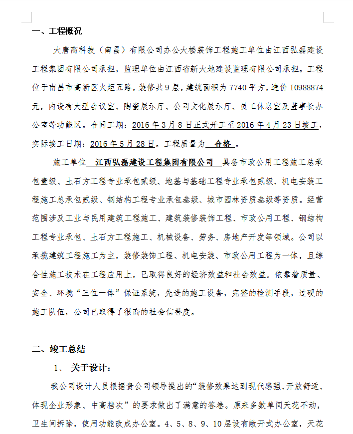 经营范围涉及工业与民用建筑工程施工、建筑装修装饰工程、市政公用工程、钢结构工程专业承包、土石方工程施工、机械设备、劳务、房地产开发等领域。公司以承揽建筑工程施工为主,装修装饰工程、机电安装、市政公用工程为一体,且综合性施工技术在工程应用上,已取得良好的经济效益和社会效益。依靠着质量、安全、环境“三位一体”保证系统,先进的施工设备,完整的检测手段,过硬的施工队伍,公司已取得了很高的社会信誉度。