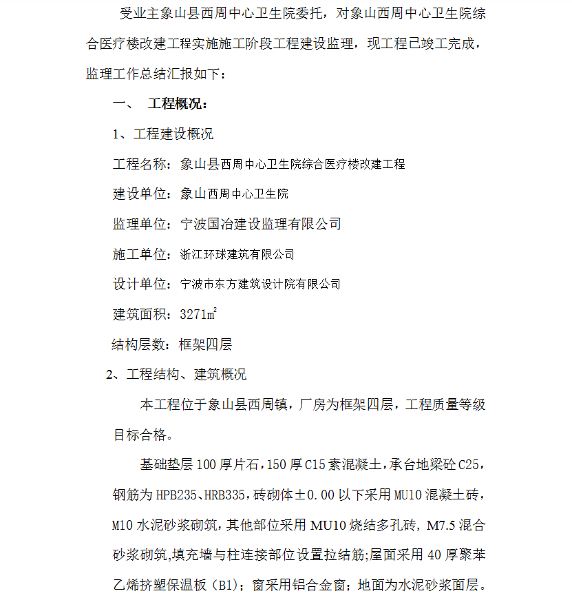 卫生院综合医疗楼改建工程竣工验收监理工作总结报告 16P