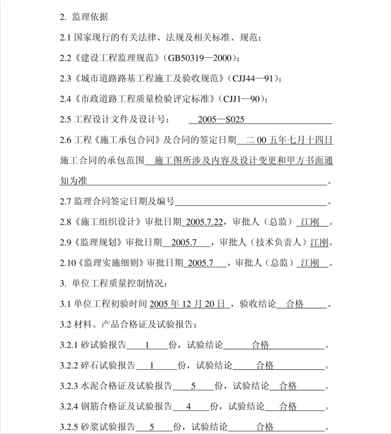 ¸ÃµÀ·µ¥Î»¹¤³Ì°üÀ¨:·»ù¡¢Â·Ãæ¡¢µ²ÍÁǽ¡¢ÈËÐеÀ¼°¸½Êô¹¹ÖþÎïµÈÏîÄ¿¡£Â·´²¡¢Ìî϶Ëéʯµæ²ã¡¢Ë®ÄàÎȶ¨Ëéʯ²ã¾­È¨Íþ¼ì²âµ¥Î»ºÍ¼àÀíµ¥Î»ÒÔ¼°½¨É赥λ¼ì²âÑéÊպϸñ:ÆöÌ幤³Ì¶ÏÃæ³ß´ç¡¢É°½¬Ç¿¶È¡¢Ç½ÃæÆÂ¶ÈµÈ¾ù·ûºÏÉè¼Æ¼°Ê©¹¤¹æ·¶ÒªÇó: