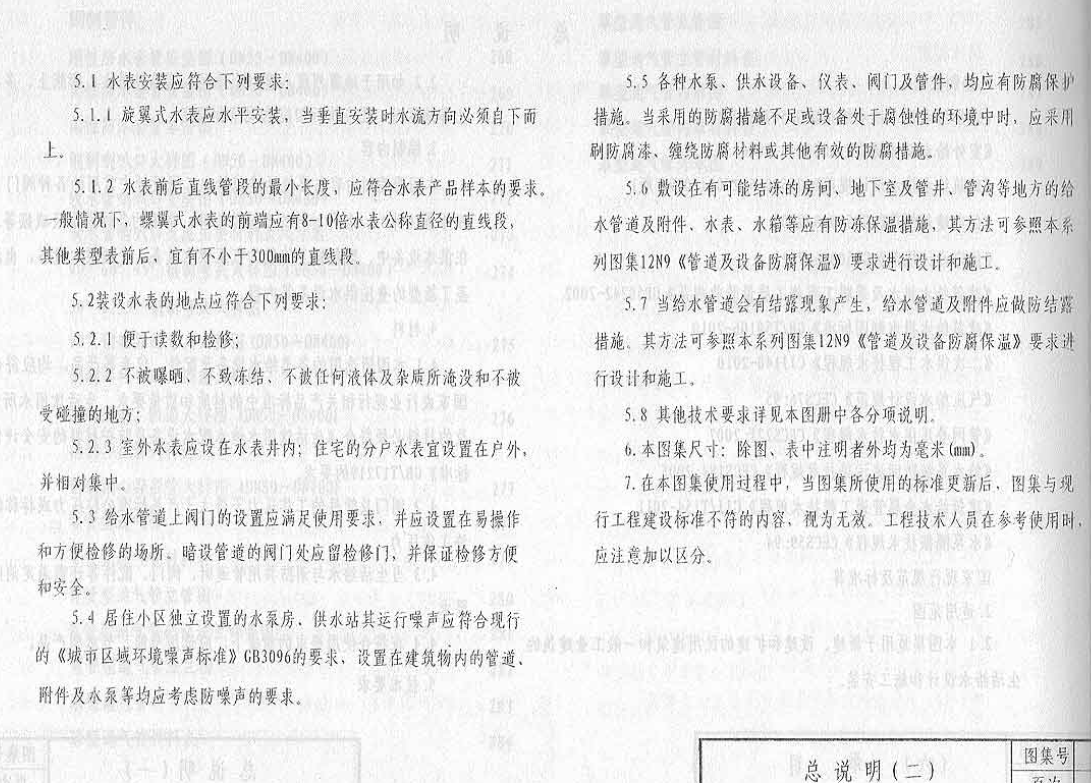 本图集适用于新建、改建和扩建的民用建筑和一般工业建筑的生活给水设计和施工安装。