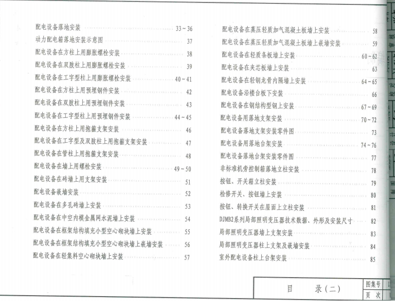 本图集适用于一般正常环境的1.0kV以下工业与民用工程常用电力、照明配电装置的施工安装。