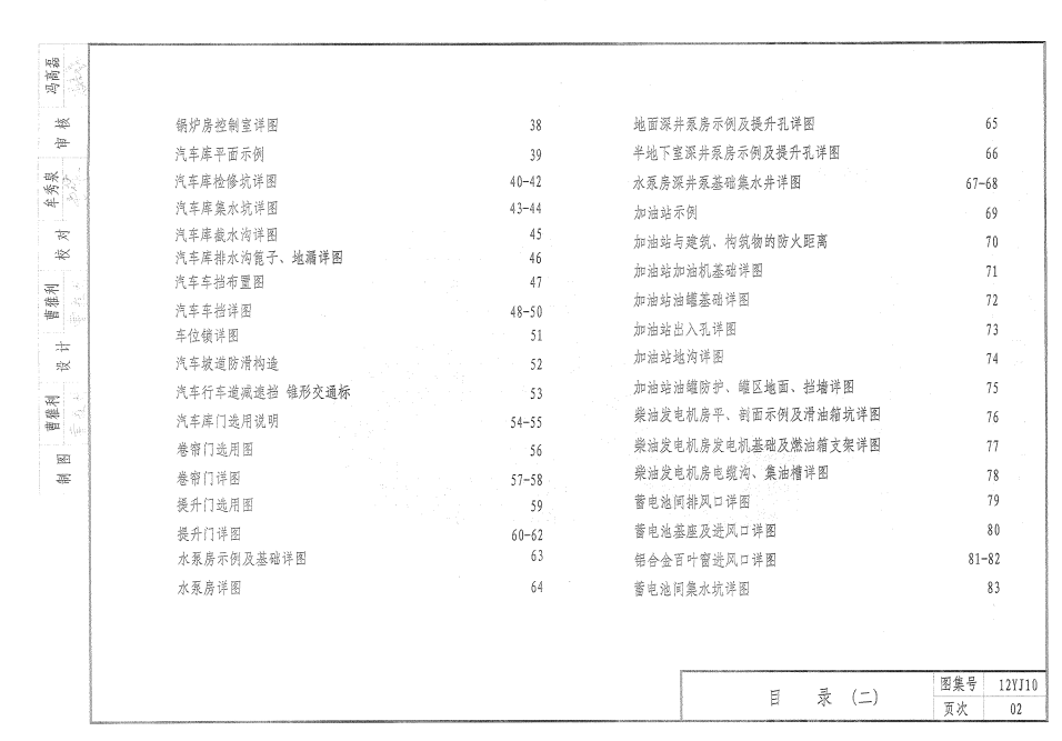 本图集适用于独立式变配电所、锅炉房、汽车库、水泵房、柴油发电机房、燃气调压站及独立式加油站、蓄电池室、花房、垃圾站等十类附属建筑。