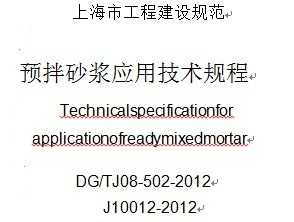 DG/TJ08-502-2012 预拌砂浆应用技术规程