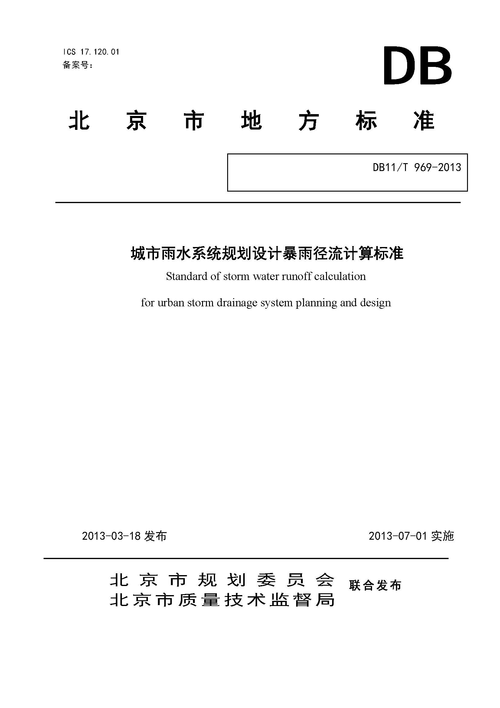 DB11/T 969-2013城市雨水系统规划设计暴雨径流计算标准