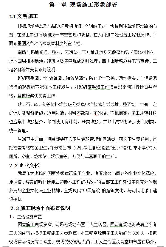 施工现场的临时设施较多,这里主要指施工期间临时搭建、料具堆放、场地硬化、各种工具式用房搭建、临电、临水布置等。临时设施必须合理选址、正确用材,确保使用功能和安全、卫生、环保、消防要求。