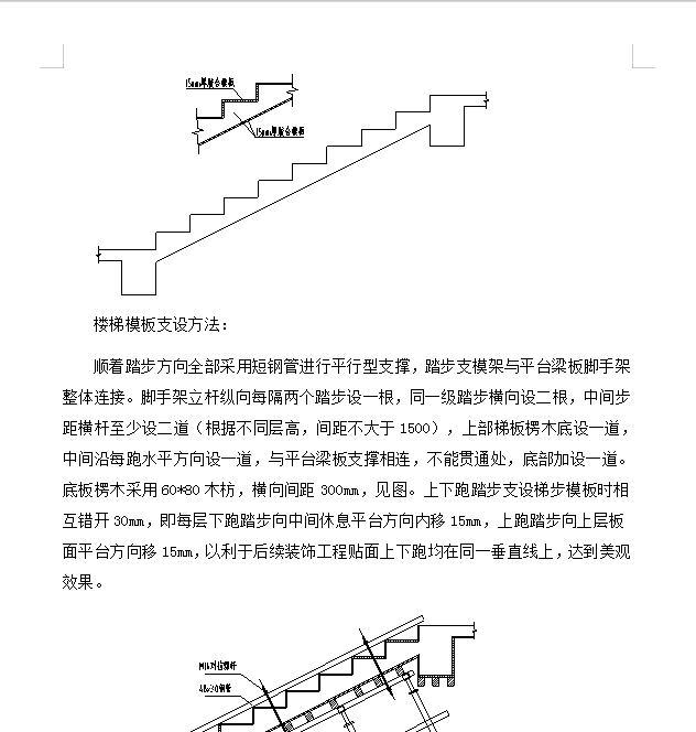 后浇带部位加设独立支撑体系,使用多肢钢管柱。多肢钢管柱尺寸为300*300*支模高度。材料为轮扣式架管,架管满刷400间距的红白油漆独立搭设,与周围支模架区分开,拆模时多肢钢管柱不拆除。多肢钢管柱间纵向距约3.5米一个。后浇带浇筑前重新支设支模架,这样保证了支模的连续性,从而保证了后浇带混凝土的成形质量和板底平整度。