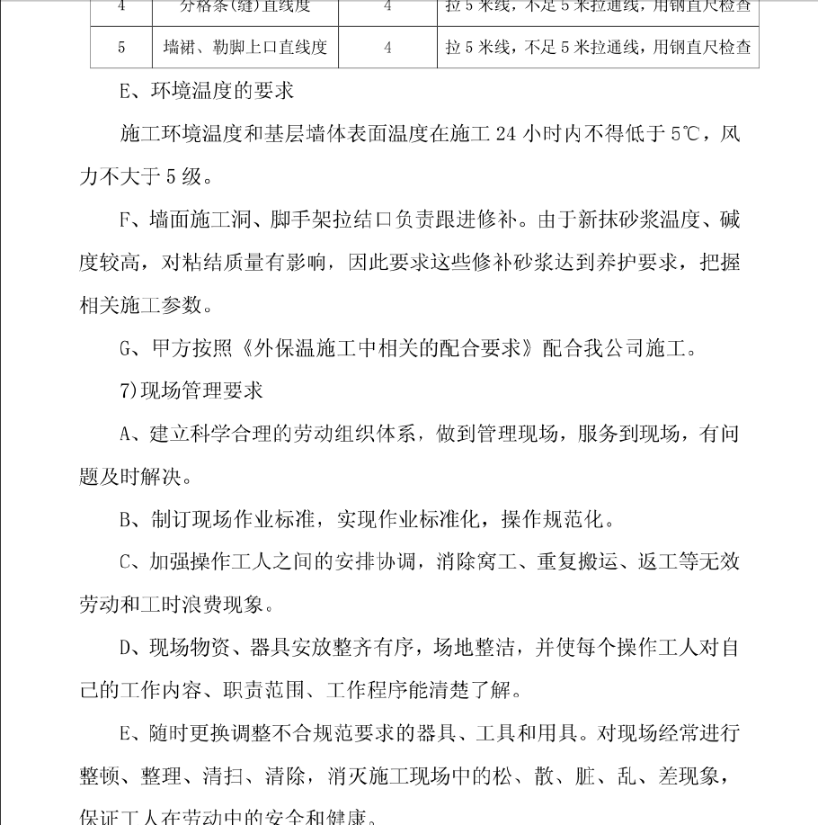 本工程外墙面积约计1100 m’,外墙保温采用EPS聚苯板薄抹灰保温系统,EPS 保温板规格为1200*600*60 密度大于等于30 kg/m',耐碱网格布为大于160g/m", 膨胀拴固定,聚合物砂浆贴砌挤塑板。施工环境温度和基层墙体表面温度在施工24小时内不得低于5C,风力不大于5级。
