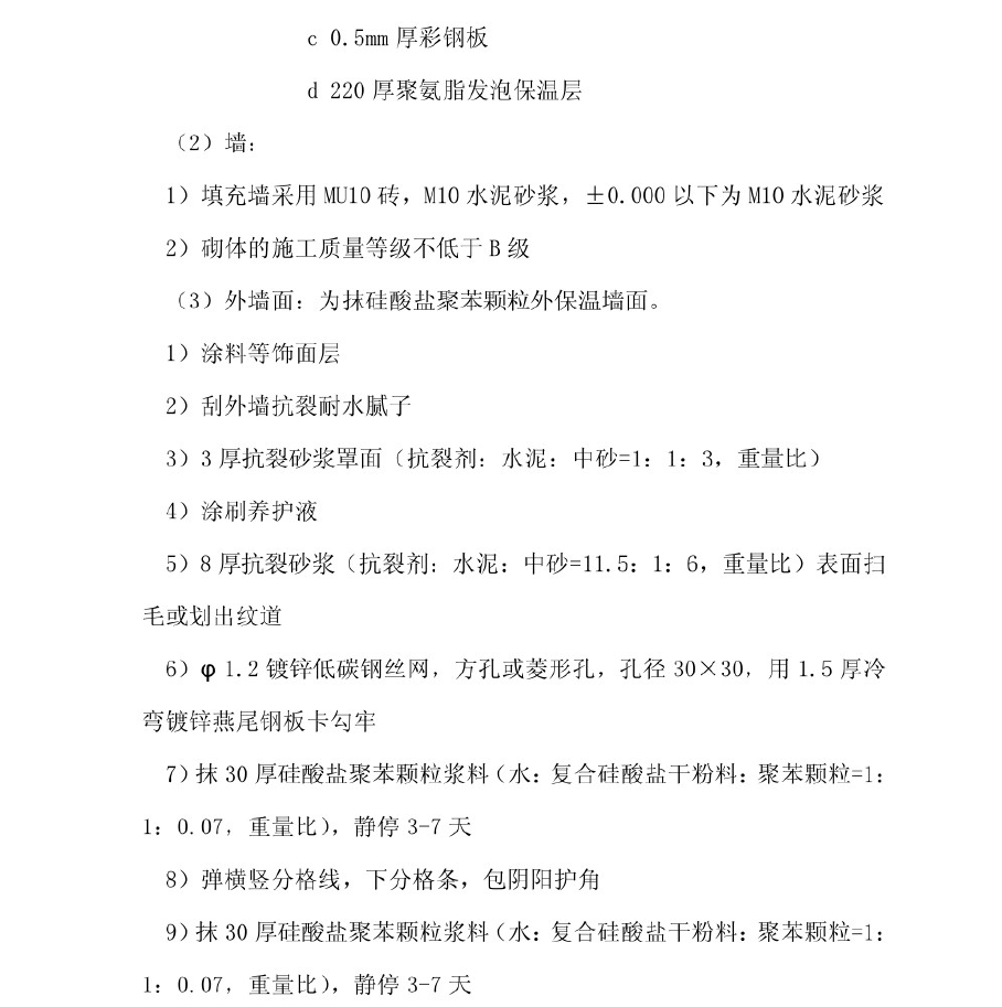 该工程为砖混结构,屋面为采用夹心彩钢板,单层,建筑高度为5.95m,建筑面积381.25m'。工程建筑结构安全等级为二二级,抗震设防烈度为8度,建筑等级为三级,耐火等级为二级,防水等级为II级,工程质量要求:合格。