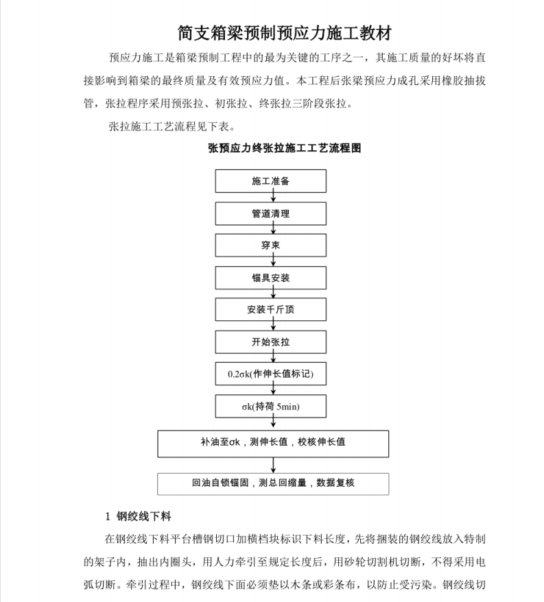 点击进入下载简支箱梁预制预应力施工作业指导书 9P