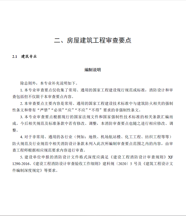 本审查要点供房屋建筑和市政基础设施工程消防设计文件审查时使用,从事房屋建筑和市政基础设施工程消防设计和其他相关工作时可参考使用。