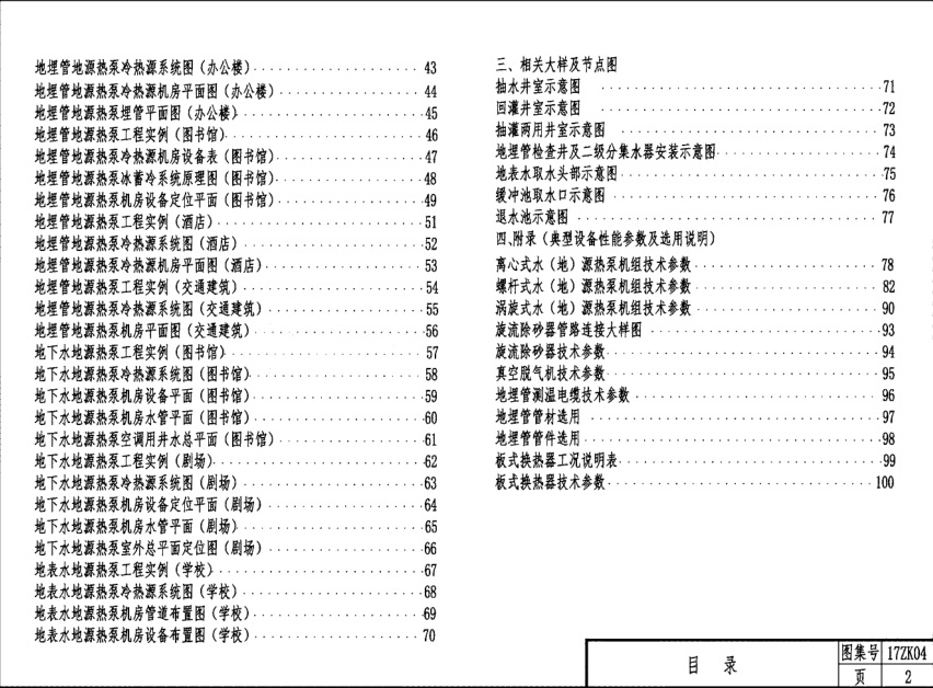 本图集适用于中南地区采用地下岩土体、地下水.地表水作为低品位热源及热汇的热泵系统,指导地源热泵系统工程的设计与施工,包括地源热泵系统工艺设计.系统集成与安装。地源热泵机组的性能及选用原则。水处理设备.温度监控及测量系统.二级分集水喜及HDPE管材的性能。闭式冷却塔及板式换热器的性能及选用。
