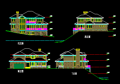 图纸包括:北立面图、地下层平面图、一层平面图、二层平面图、屋顶平面图等,供参考!