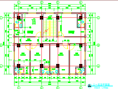 某自建楼房建筑施工图纸包括首层平面图、二~五层平面图、六~八层平面图、八层屋面平面图