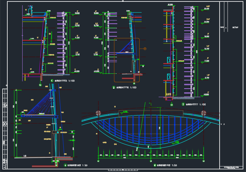 大型现代风格商业综合体建筑施工图纸,包括:平面图、立面图、剖面图、定位图、详图等