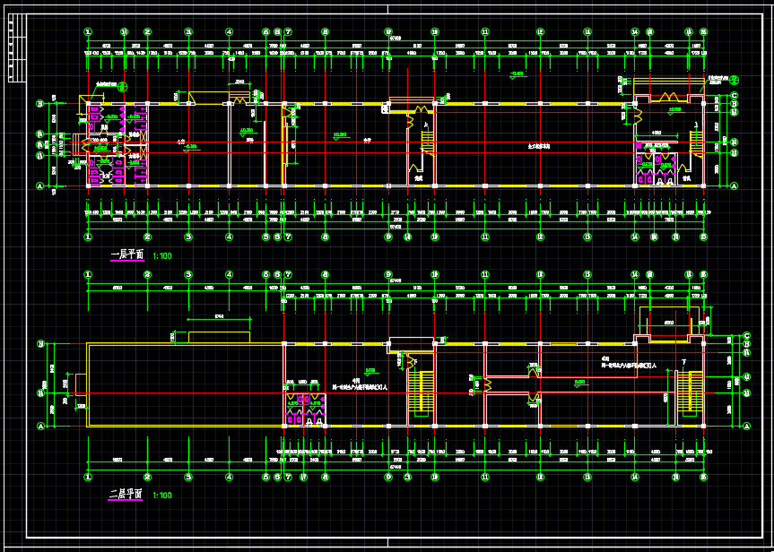 本工程为2层框架结构,总高度为 11.000米,框架抗震等级四级,安全等级二级 。建筑耐火等级为二级。屋面防水等级为III级。建筑抗震设防裂度为七度。二层框架结构社区活动中心建筑施工图包括一层平面图,二层平面图,屋顶平面图,轴立面图,剖面图,建筑详图,基础平面图,屋面梁配筋平面图,二层梁配筋平面图,屋面板配筋平面图,二层板配筋平面图等