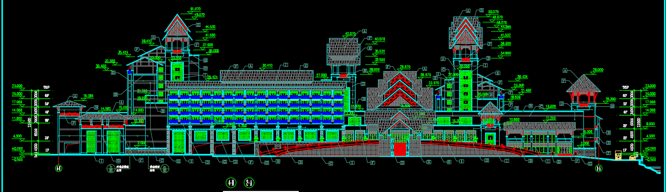 六层酒店建筑施工图纸包括了一层平面图、二层平面图、三层平面图、四层平面图、五层平面图、六层平面图、立面图、剖面图等。