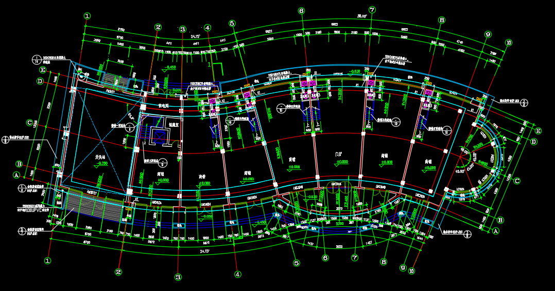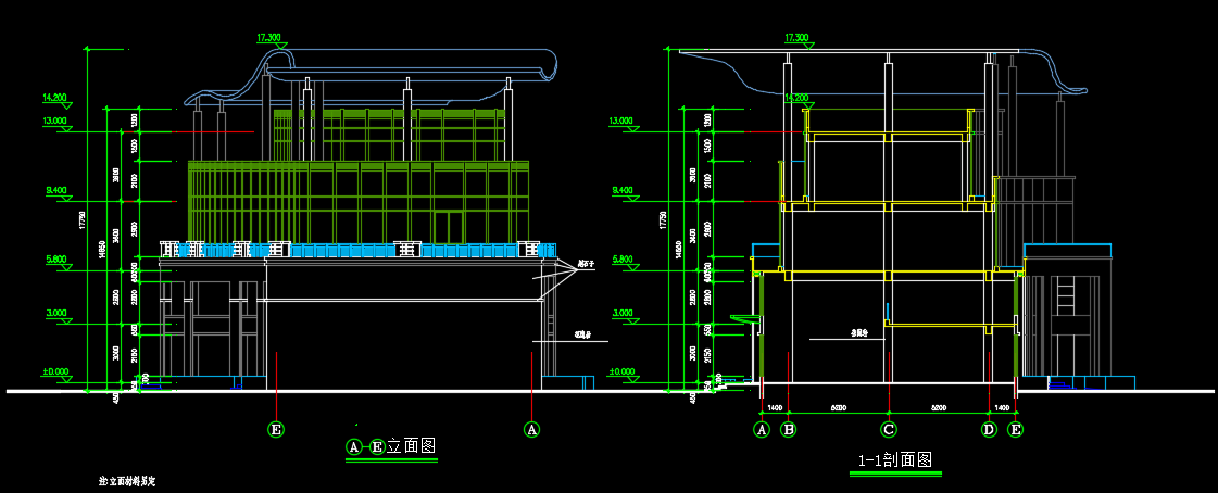 三层异形屋顶会所建筑施工图纸包括了一层平面图、二层平面图、三层平面图、夹层平面图、屋顶平面图、屋架平面图、楼梯三层平面图、楼梯屋顶层平面图、立面图、剖面图等。