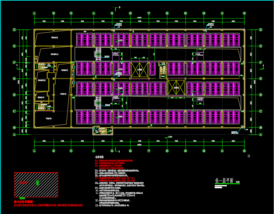 公共智慧停车场北门室外建筑施工图包括:总平面放线定位图、一层平面、车辆出入闸机口平面&立面&剖面、负一层平面、负二层平面等。