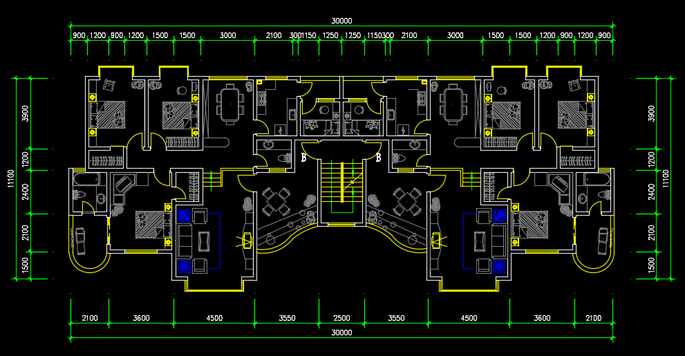 超高层住宅楼标准层户型平面图