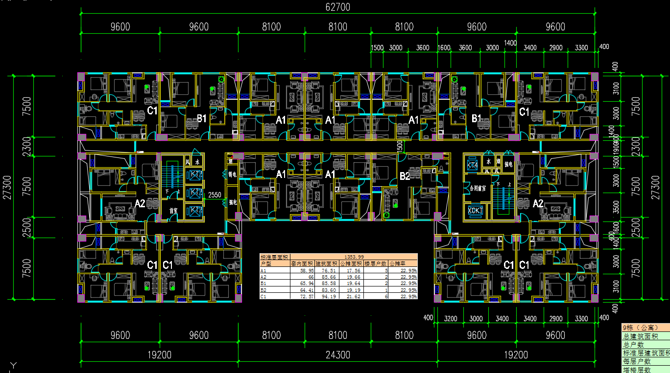 多栋公寓户型设计图包括了地下一层平面图、地下二层平面图、一层平面图、二层平面图、标准层平面图、剖面图等,供大家参考!