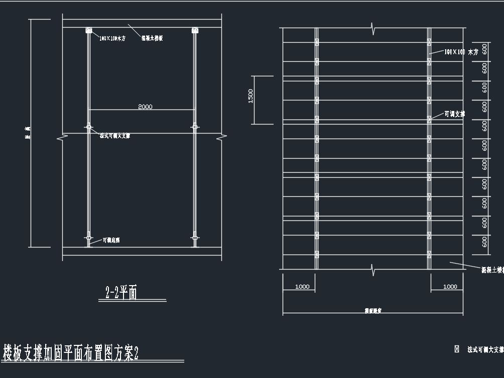主要内容:楼板支撑加固平面布置图方案1;楼板支撑加固平面布置图方案2.