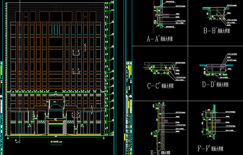 办公楼外立面干挂设计图纸包括剖面图、剖面大样图、立面图等