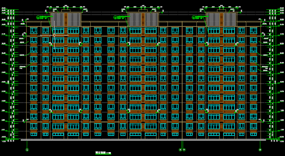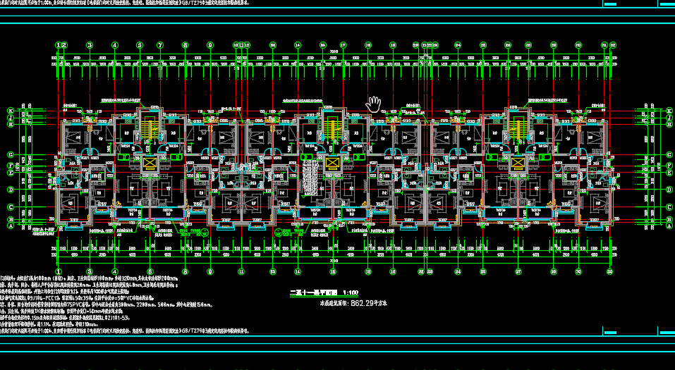 层平面图、标准层平面图、机房层平面图、项平面图、南立面图、北立面图、东立面图、1-1前面图、楼梯详围、门窗表大样图、墙体大样图、户型放大平面图、绿色建筑设计专篇