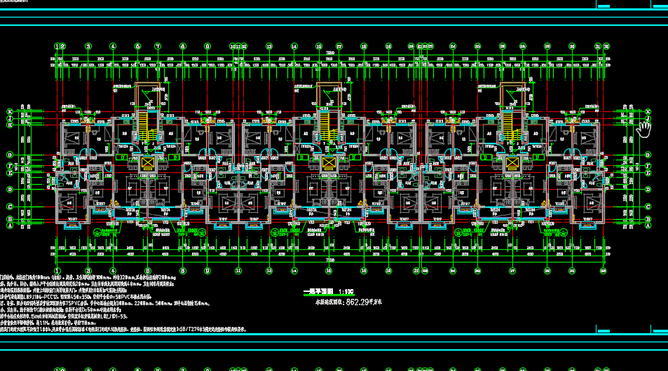 本工程建筑面积10142.32平方米,其中架空层建筑面积570.41平方米(储藏室等半面积),住宅建筑面积9571.91平方米。