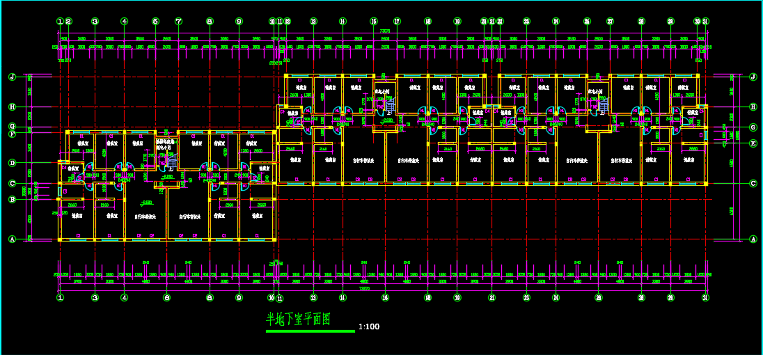 五层阁楼三单元对称户型住宅楼施工图包括;半地下室平面图、五层平面图、一层平面图、阁楼层平面图、二-四层平面图、屋顶平面图、剖面图、立面图、大样图。