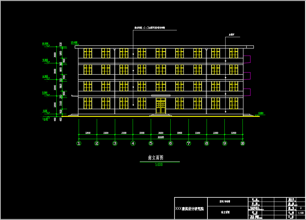 三层钢筋混凝士框架结构厂房建筑设计图纸
