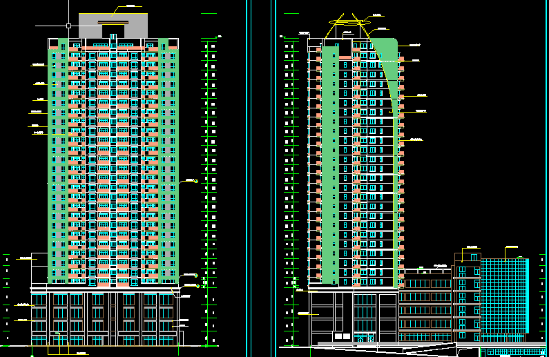 图纸中详细描绘了小区建筑立面图,剖面图,各层平面图,屋顶装饰构架平面,各层楼梯大样图,点式玻璃幕墙展开立面图等,仅作参考欢迎下载学习。