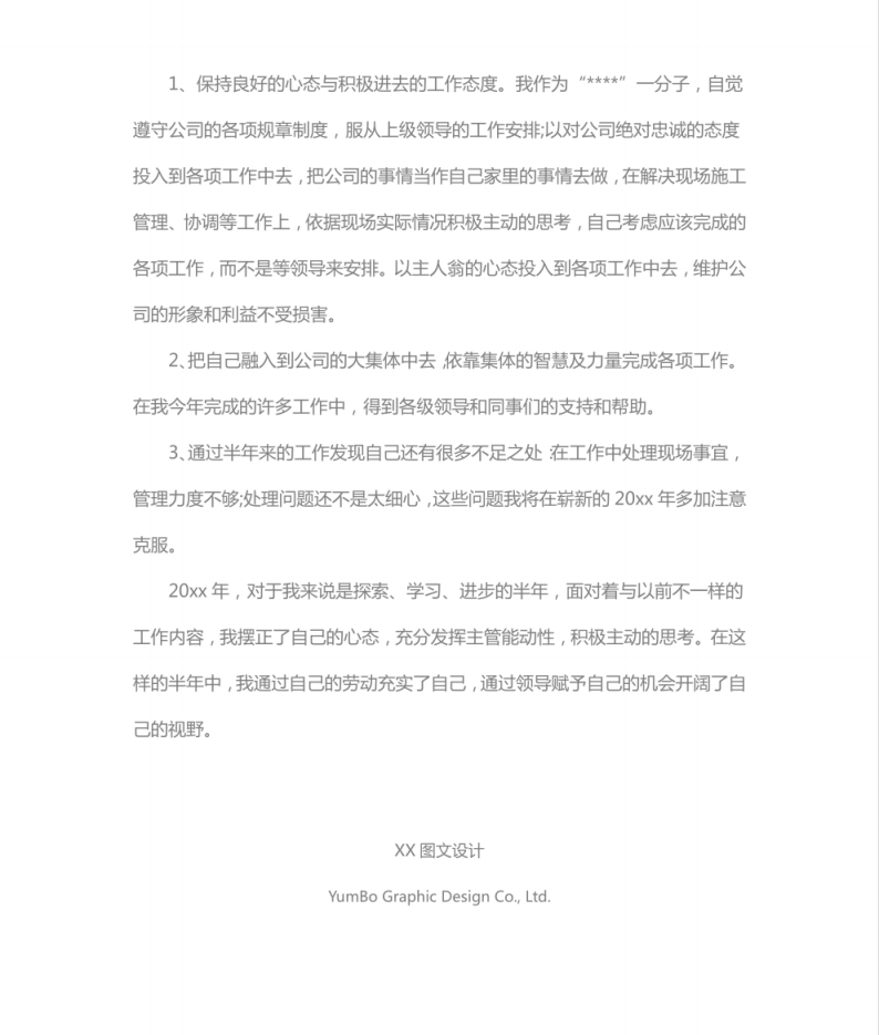 ½ñÄêÊÇÎÒ³ÉΪ.Éϰà×åÒÔÀ´µÄµÚ¶þ¸öÕûÄê¡£ÍÁ½¨¹¤³ÌʦÊÇÎÒ´ÓʵĵÚÒ»·Ý¹¤×÷ ,ÊÇÎÒÖ°ÒµÉúÑĵÄ-Ò»¸öÆðµã,ÎÒ¶Ô´ËҲʮ·ÖÕäϧ, ¾¡×î´óŬÁ¦È¥ÊÊÓ¦ÕâÒ»-¸Úλ¡£Í¨¹ý°ëÄêÀ´µÄ²»¶Ïѧϰ,ÒÔ¼°Í¬Ê¡¢Áìµ¼µÄ°ïÖú,ÎÒÒÑÍêÈ«ÈÚÈëµ½******Õâ¸ö´ó¼ÒÍ¥ÖÐ,¸öÈ˵Ť×÷¼¼ÄÜÒ²ÓÐÁËÃ÷ÏÔµÄÌá¸ß, ËäÈ»¹¤×÷Öл¹´æÔÚÕâÑùÄÇÑùµÄ²»×ãÖ®´¦,µ«Ó¦¸Ã˵ÕâÒ»Ä긶³öÁ˲»ÉÙ, Ò²ÊÕ»ñÁ˺ܶà,ÎÒ×Ô¼º¸Ðµ½³É³¤ÁË,Ò²Öð½¥³ÉÊìÁË¡£ÏÖÔÚ¾Í20xxÄêµÄ¹¤×÷Çé¿ö×ܽáÈçÏÂ: