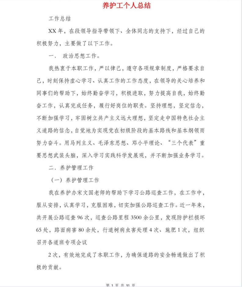 ¶àÆªÑø»¤¹¤¸öÈË×ܽ᷶ÎÄ 31P