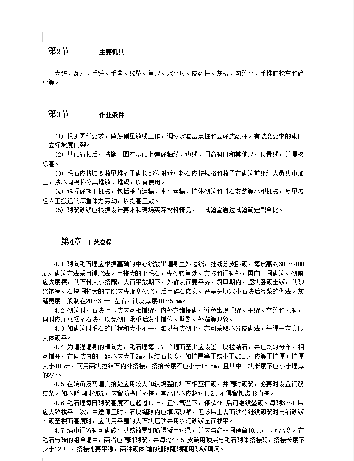 3 如砌筑时毛石的形状和大小不一,难以每皮砌平,亦可采取不分皮砌法,每隔一定高度大体砌平。