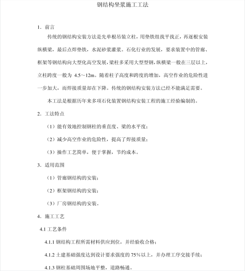 点击进入下载钢结构坐浆法施工工法PDF 8P