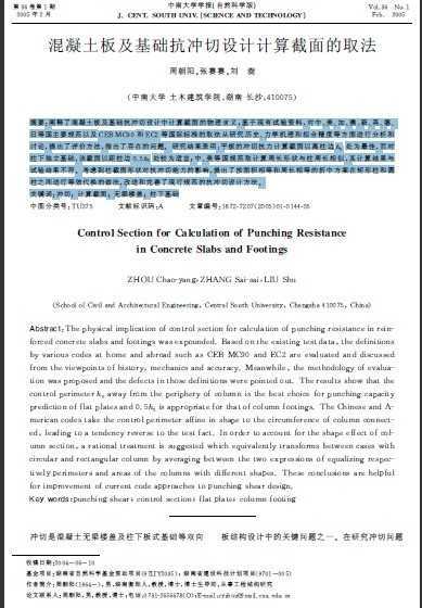 摘要$阐释了混凝土板及基础抗冲切设计中计算截面的物理含义$基于现有试验资料"对中%美%加%澳%新%英%德%等国主要规范以及234526%和32$等国际标准的取法从研究历史%力学机理和拟合精度等方面进行分析和讨论"提出了评价方法"指出了存在的问题&研究结果表明’平板的冲切抗力计算截面以离柱边!%处为最佳"而对柱下独立基础"该截面以距柱边%*&!%处较为适宜$中%美等国规范取计算周长形状与柱周长相似"其计算结果与试验结果不符&考虑到柱截面形状对抗冲切能力的影响"提出了按面积相等和周长相等的折中方案在矩形柱和圆柱之间进行等效代换的做法"改进和完善了现行规范的抗冲切设计方法&