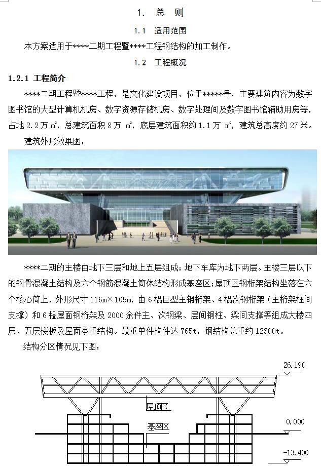 工程主要建筑内容为数字图书馆的大型计算机机房、数字资源存储机房、数字处理间及数字图书馆辅助用房等,占地2.2万m2,总建筑面积8万 m2,底层建筑面积约1.1万 m2,建筑总高度约27米。