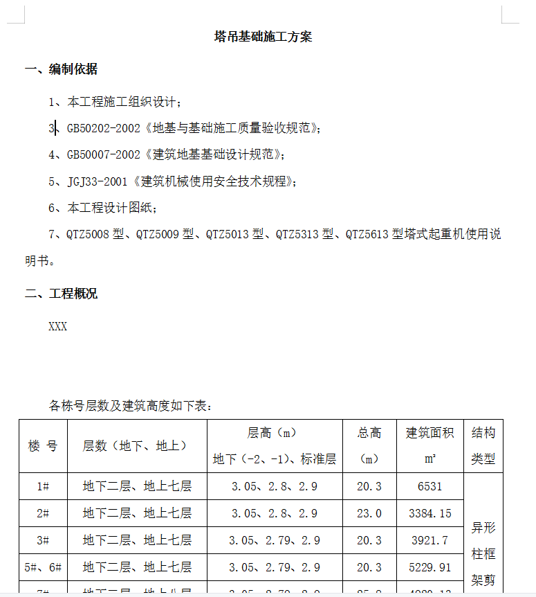 五、塔吊基础施工技术措施及质量验收 1