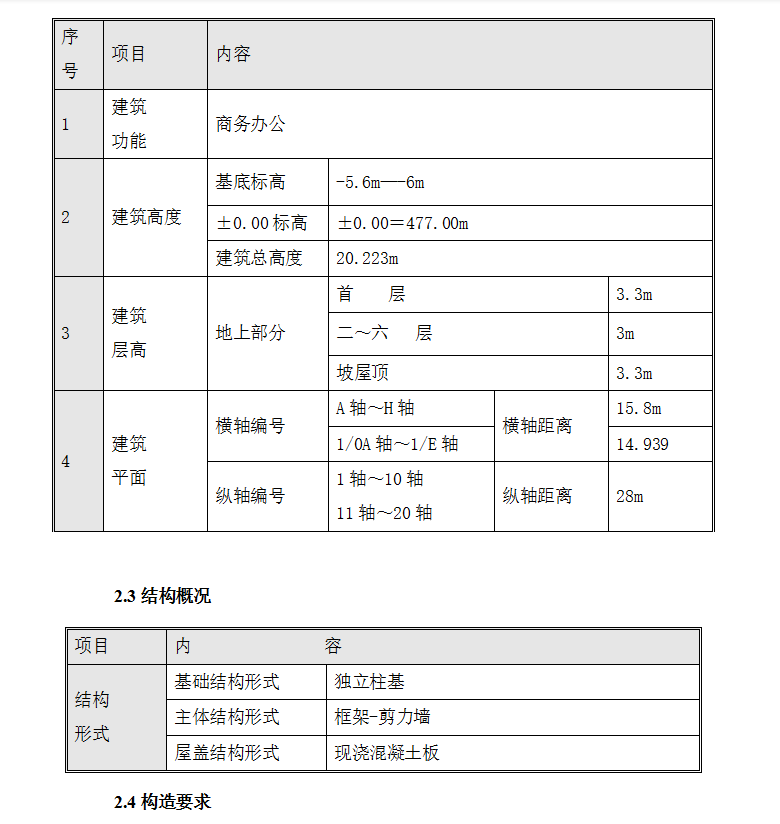 建筑功能:商务办公,建筑高度:基底标高-5.6m—-6m,±0.00标高,±0.00=477.00m
