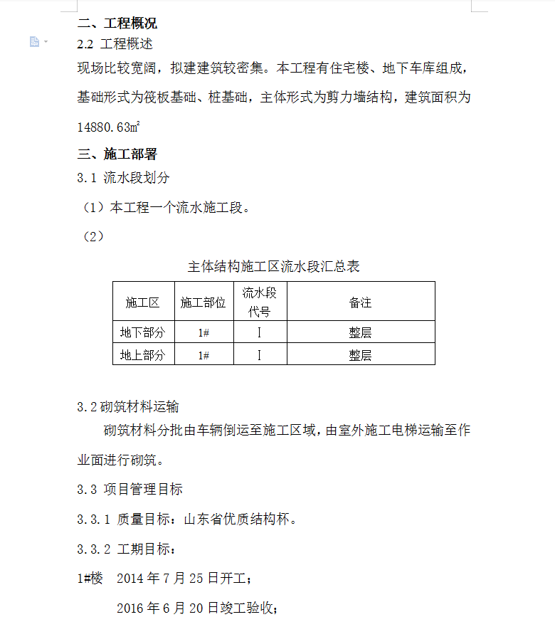 现场比较宽阔,拟建建筑较密集。本工程有住宅楼、地下车库组成,基础形式为筏板基础、桩基础,主体形式为剪力墙结构,建筑面积为14880.63m2。